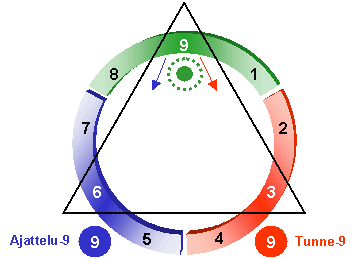Yhdeksiköt ovat enneagrammikuviossa vaistokeskuksen keskellä, mutta vaisto/toiminta voi olla heillä kuitenkin alistettuna ja joko ajattelukeskus tai tunnekeskus on hallitseva. Näin voidaan puhua ajattelu- ja tunneyhdeksiköistä.