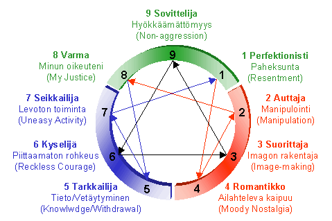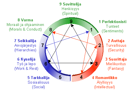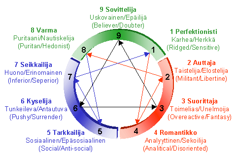 Enneagrammityylien hallinta-alueet (Domain) ja niiden painotukset vaihtelevat tyyleittäin.